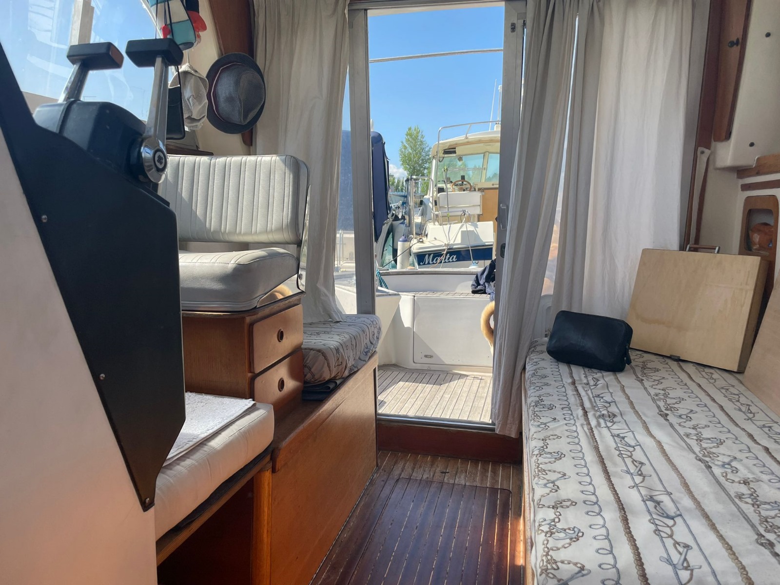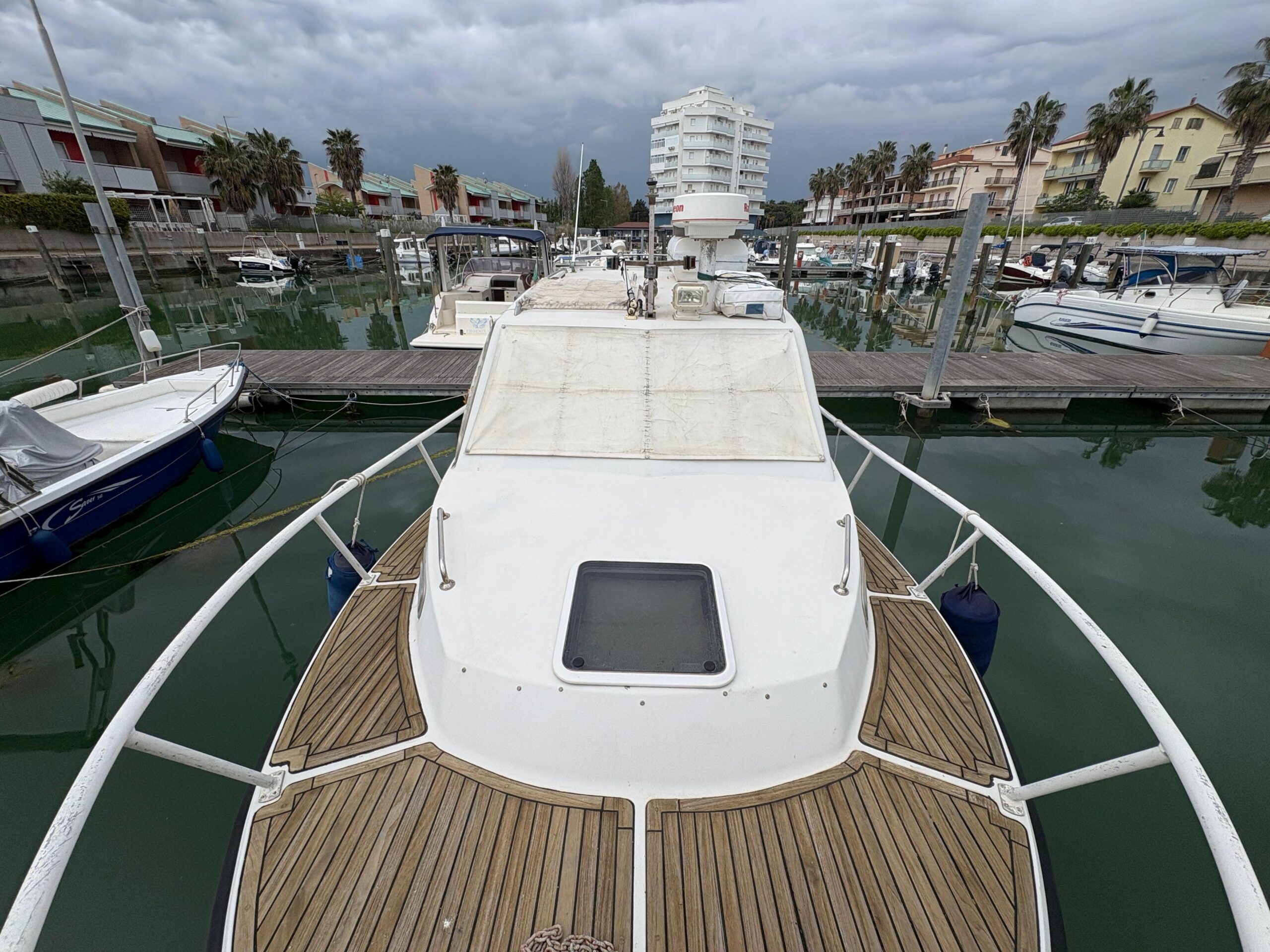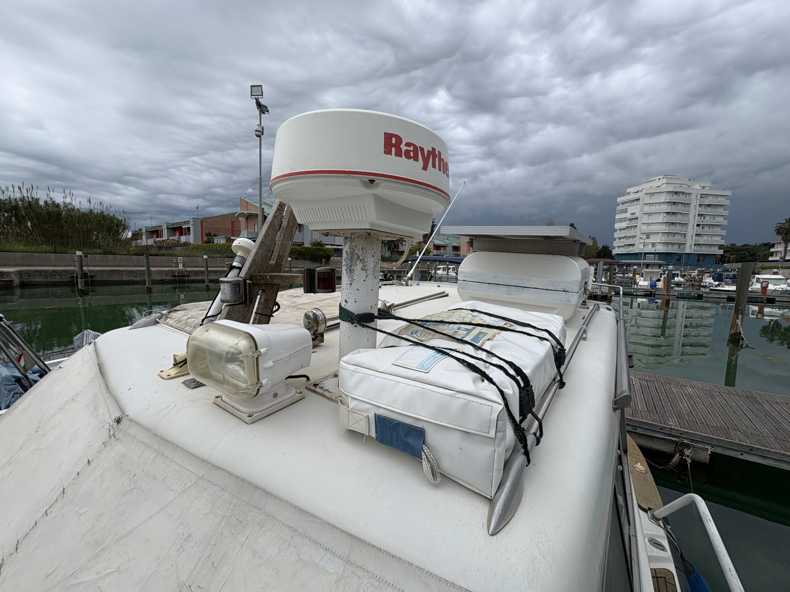 Questo esemplare del 1988, unità da diporto “natante” si presenta in discrete condizioni ed è dotata di vari optional. Oltre ad essere una barca solida e marina, il suo scafo blu, e le ampie aree ricoperte in teak la rendono elegante e senza tempo. Numerosi i lavori eseguiti di recente, tra cui applicazione di nuova antivegetativa e manutenzione straordinaria dei motori, con tagliandi, revisione di motorini di avviamento, invertitori e linee d’asse, con sostituzione di cuffie e baderne. Necessita tuttavia di alcuni interventi per tornare al suo splendore originale, come la ripresa dei legni e la sistemazione della manetta esterna. Da vedere.