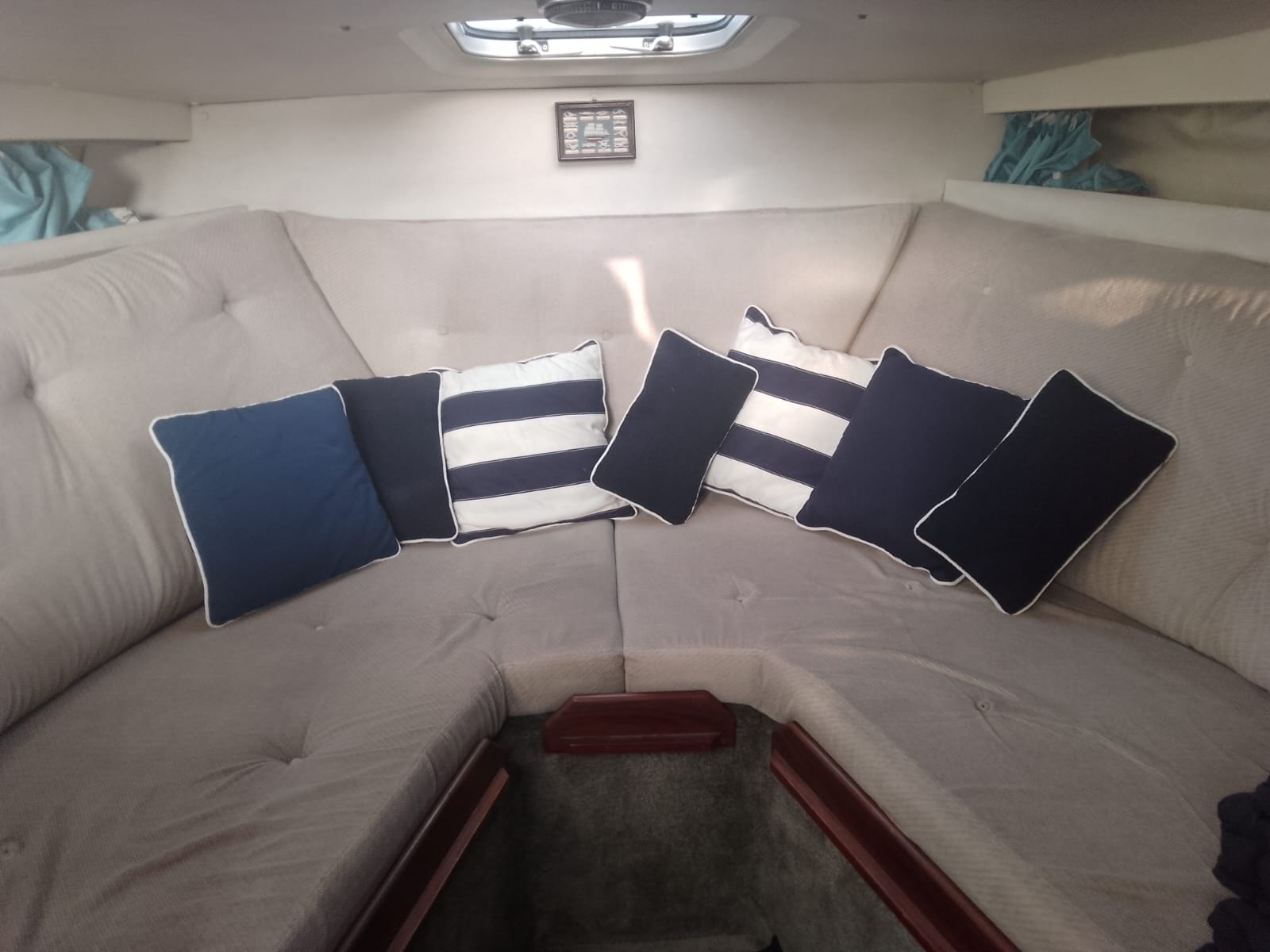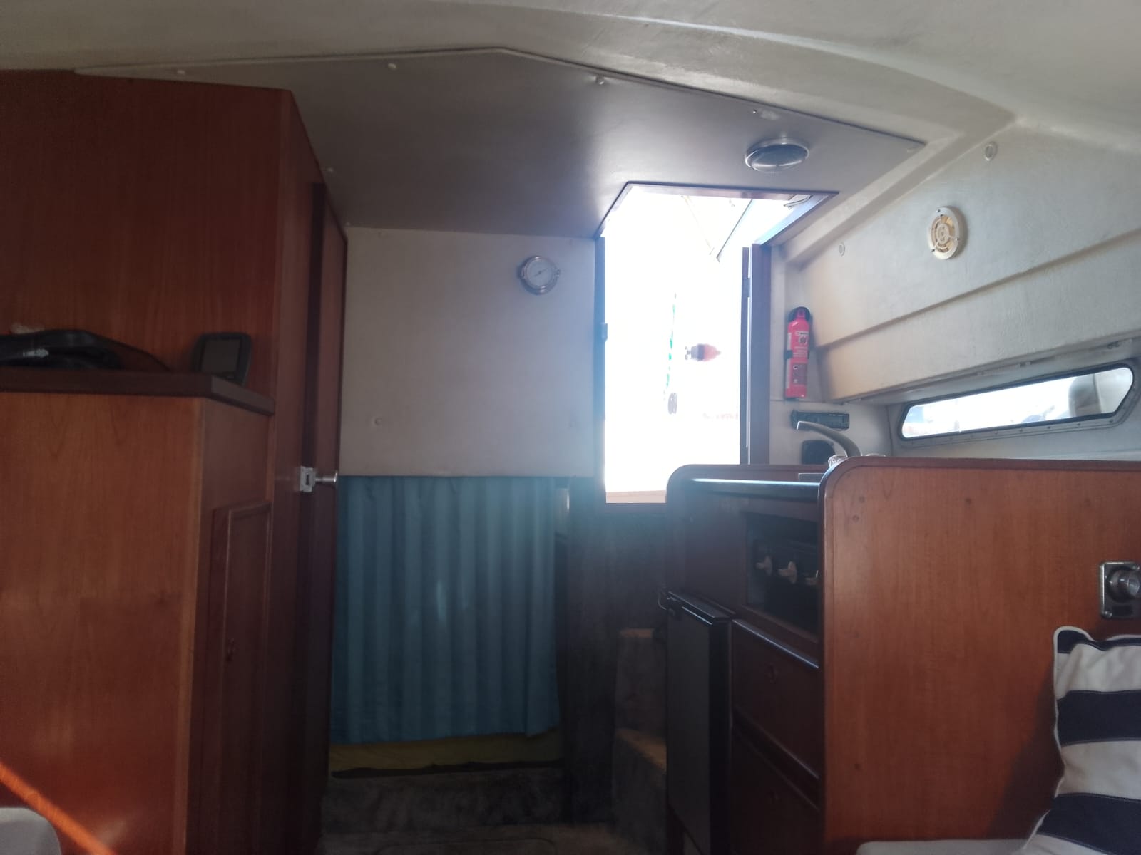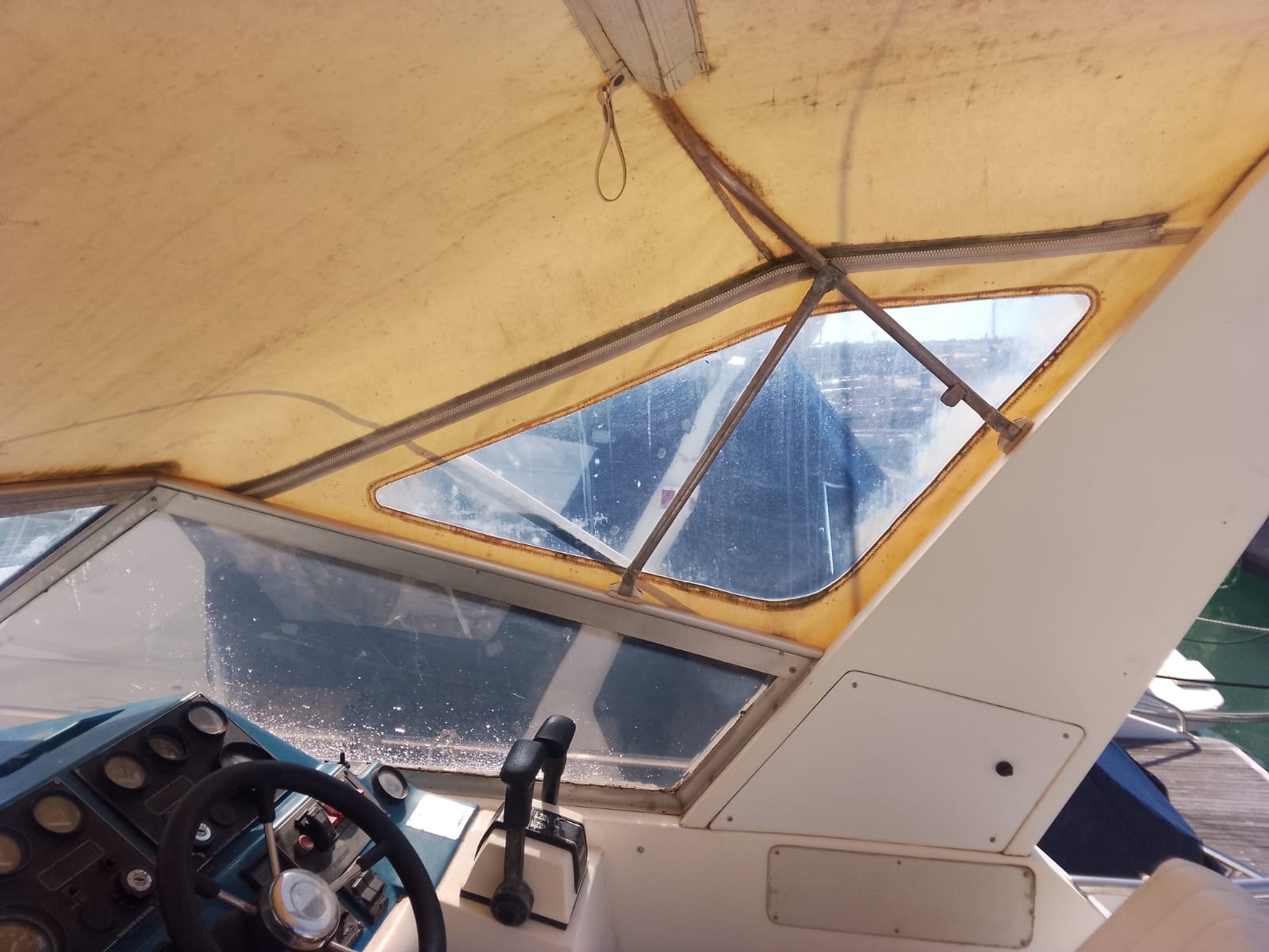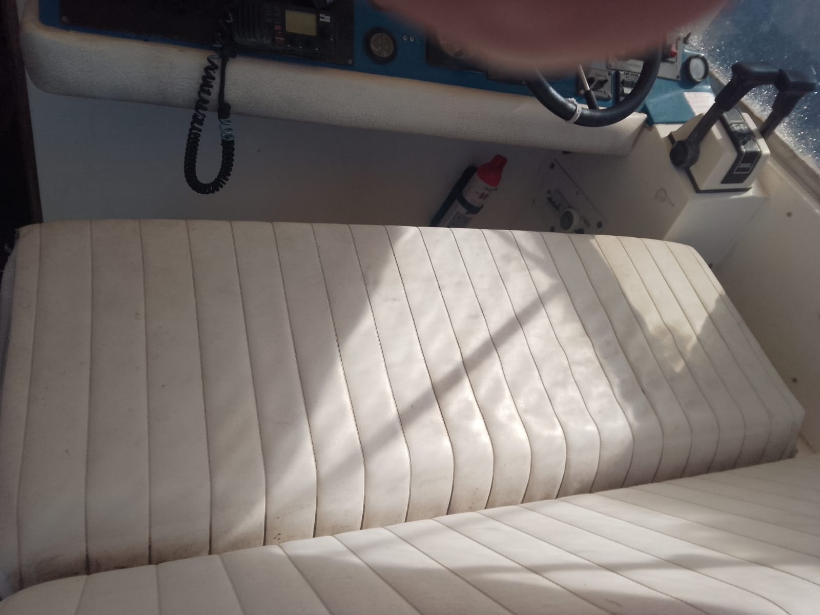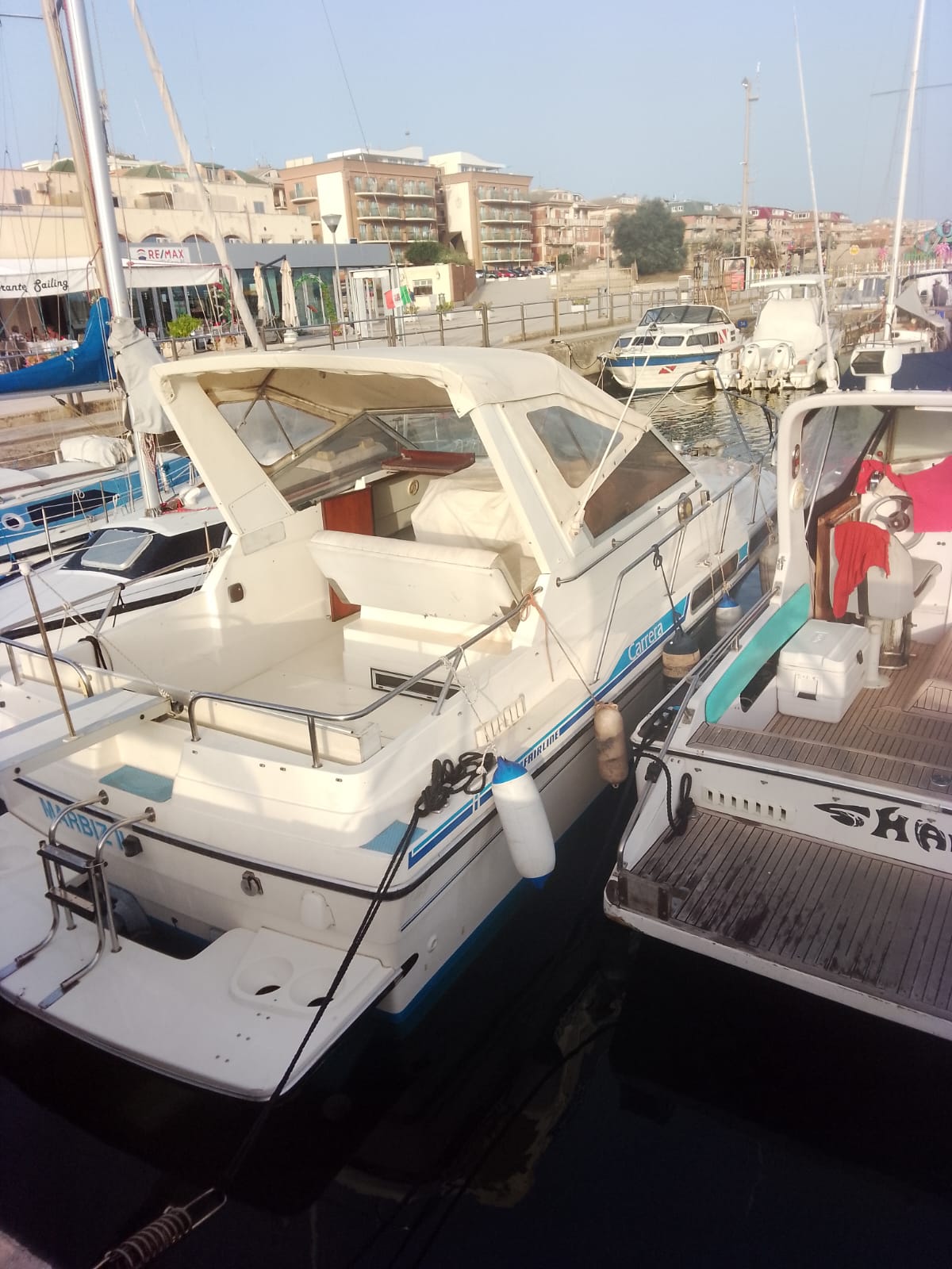 I due Volvo penta da 130cv danno brio a questo piccolo cabinato inglese del 1985. Fairline, CARRERA 24. Discrete condizioni generali, nessuna osmosi, motorizzato 2 diesel cilindrata 2393, CV 130 a 3800 giri, bassi consumi, completamente revisionati 2022, eliche Duo prop. Tappezzeria tessuto in buono stato, 4 posti letto, Impianto 12-220V, tre batterie (sostituite anno 2023) per totale 300Ah, carica batterie, cucinetta interna con piano cottura, frigo e lavabo, tavolo interno, armadio porta giacche e vani oggetti . Moquette presente nel piano calpestio di tutta l’imbarcazione, tendaggio blu interno, bagno (pompa servizi nuova), tendalini di copertura in buono stato, ecoscandaglio + Gps Garmin, passerella alluminio.