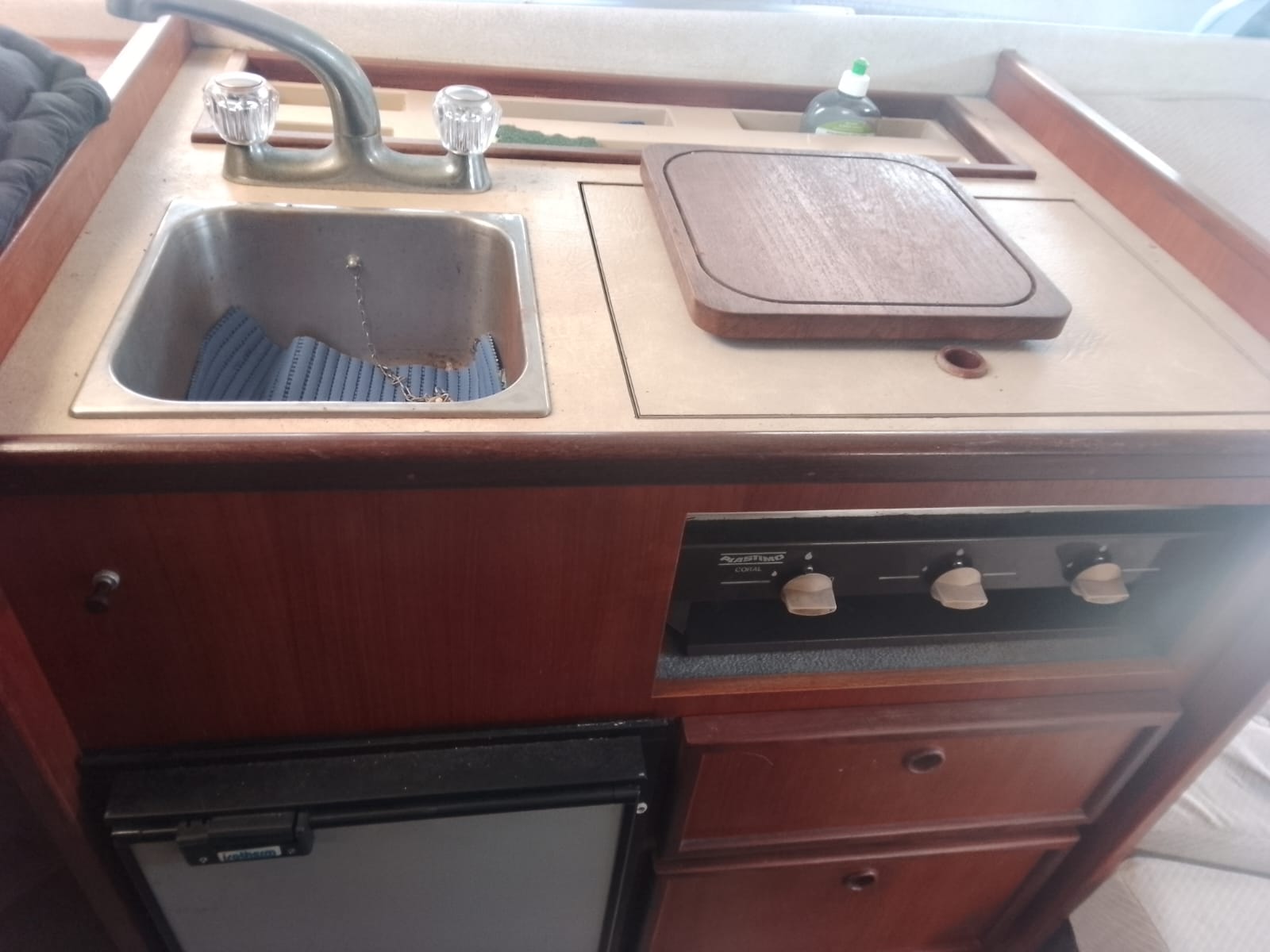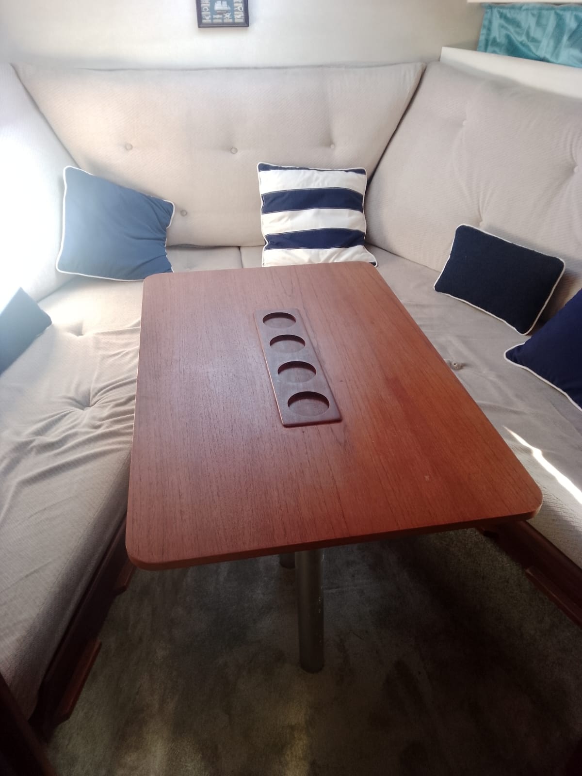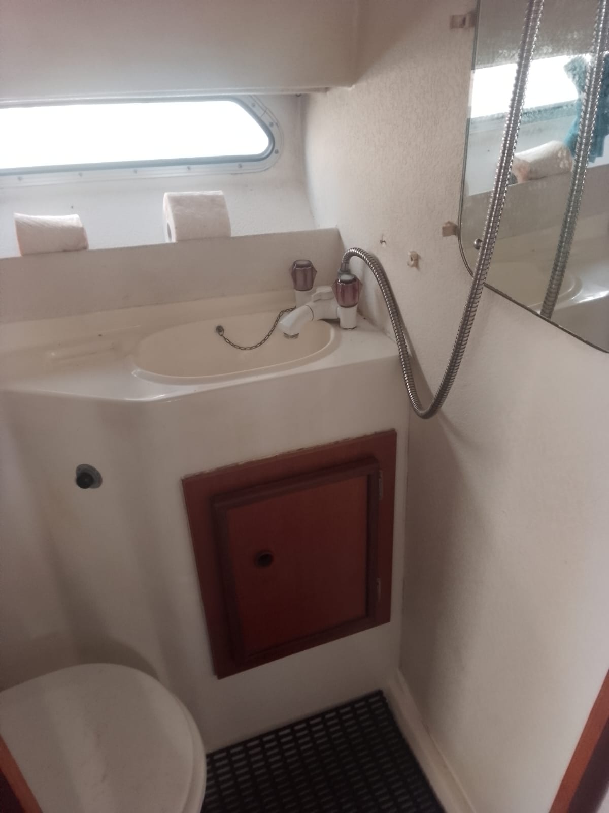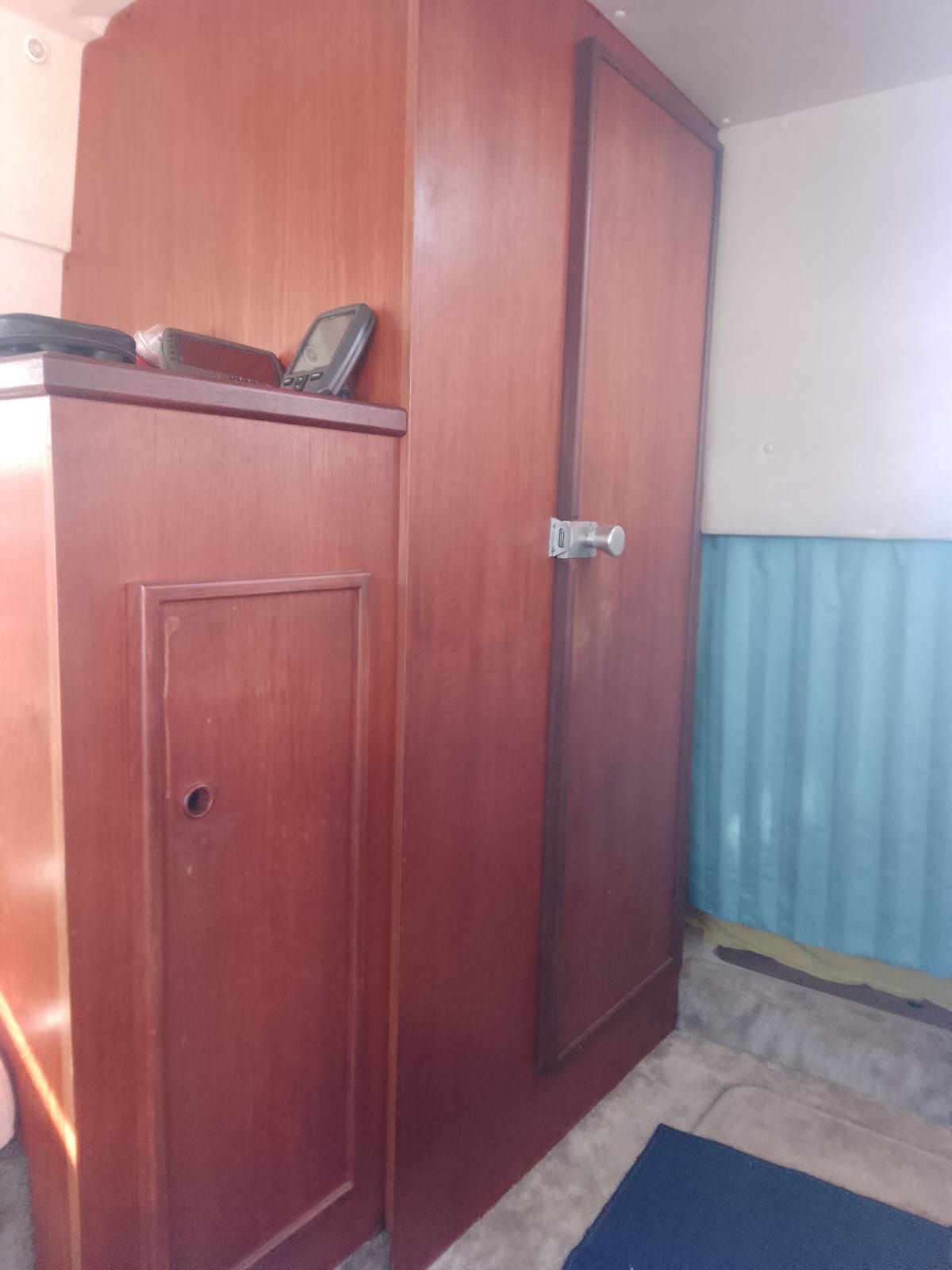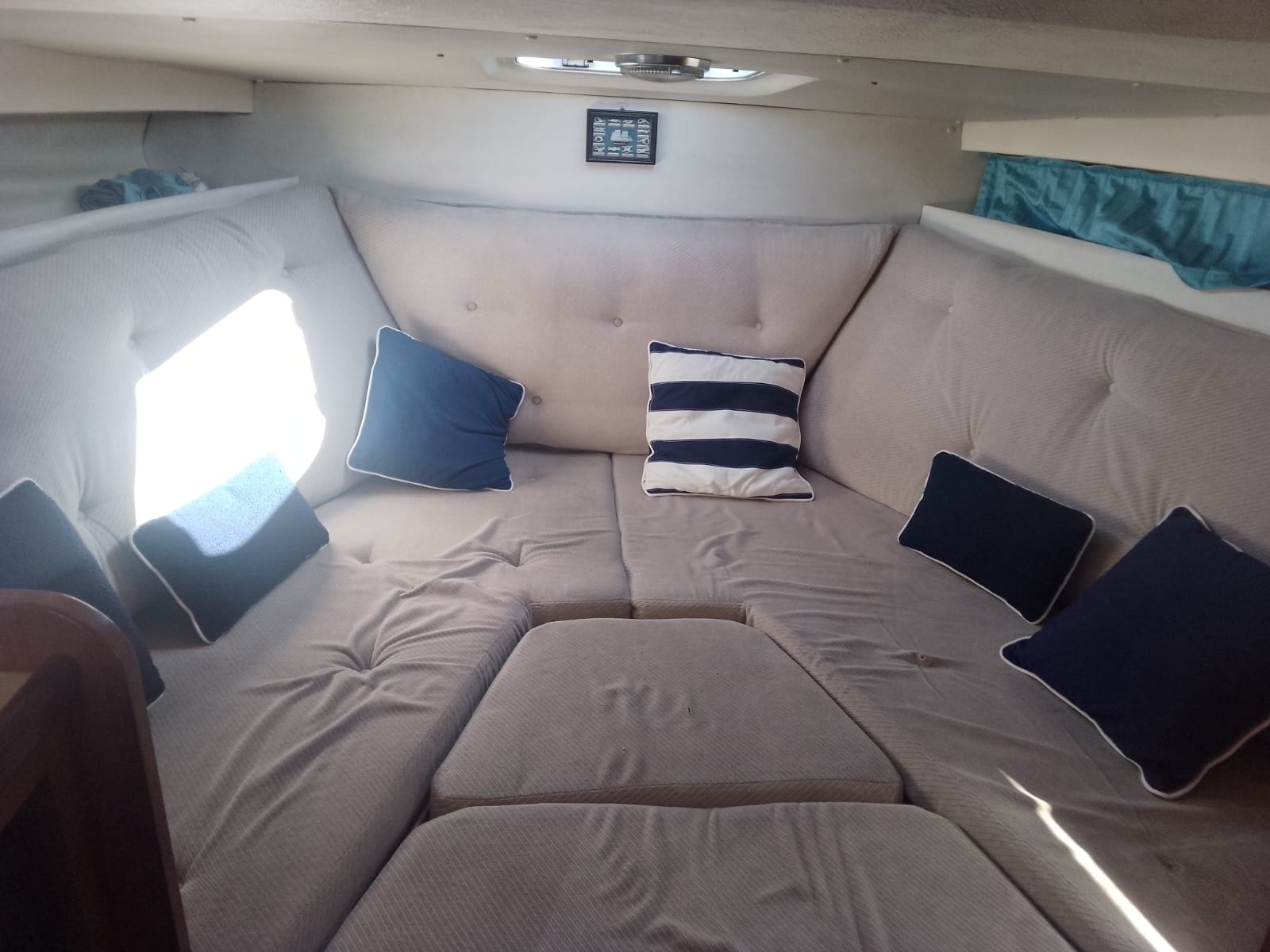 I due Volvo penta da 130cv danno brio a questo piccolo cabinato inglese del 1985. Fairline, CARRERA 24. Discrete condizioni generali, nessuna osmosi, motorizzato 2 diesel cilindrata 2393, CV 130 a 3800 giri, bassi consumi, completamente revisionati 2022, eliche Duo prop. Tappezzeria tessuto in buono stato, 4 posti letto, Impianto 12-220V, tre batterie (sostituite anno 2023) per totale 300Ah, carica batterie, cucinetta interna con piano cottura, frigo e lavabo, tavolo interno, armadio porta giacche e vani oggetti . Moquette presente nel piano calpestio di tutta l’imbarcazione, tendaggio blu interno, bagno (pompa servizi nuova), tendalini di copertura in buono stato, ecoscandaglio + Gps Garmin, passerella alluminio.